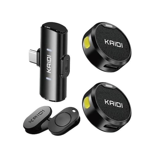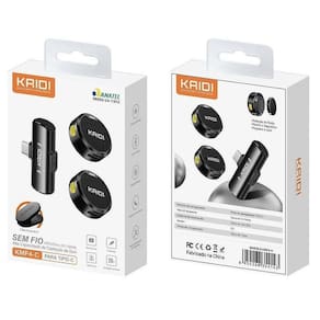 Sistema Microfone Duplo Kaidi Kmf4-C Wireless Usb-C Para Smartphones Este Sistema Microfone Duplo Kaidi KMF4-A Wireless USB-C para Smartphones possui frequência wireless de alta capacidade, transmissores com clipes magnéticos e autonomia de até 4 horas, assim como oferece uma alta qualidade de som, sendo portátil e muito fácil de usar. Projetado para captação simultânea de 2 pessoas, o conjunto traz tecnologia Plug and Play que não necessita de aplicativos e drivers, basta conectar no celular e usar. É perfeito para streaming , reuniões, gravações, criação de e muito mais.Desenvolvido com dois transmissores sem fio e um compacto, o Microfone Duplo Kaidi KMF4-A USB-C oferece uma captação com alta sensibilidade, áudio 360 graus e resposta rápida para que você grave todos os detalhes de som. o microfone Lapela para Smartphone é emparelhado automaticamente imediatamente após a conexão, sem necessidade de softwares adicionais. no , uma porta USB-C disponível permite conectar um carregador não incluso para alimentar o seu celular enquanto está utilizando os microfones sem fio.O microfone Lapela Duplo Sem Fio para Smartphones integra baterias de longa duração e seu alcance sem fio trabalha com uma distância de até 25m sem obstáculos . Áudio limpo e preciso, captação sem fio 360º Plug USB-C para Smartphones e Tablets 2x Transmissores com Microfone Integrado suporta gravação de 2 pessoas simultaneamente Baixa latência, delay inferior a 50 milissegundos Alcance de até 25 metros em locais sem obstáculos Circuito inteligente com redução de ruído Bateria interna de alta autonomia, duração de até 5 horas Compatível com uma variedade de dispositivos USB-CAdequado para gravações e transmissões Youtube, Facebook, Live Streaming, Gravação de Vídeo, Vlog, TikTok, Entrevista, Aulas Online e muito mais.Imagens ilustrativas. Homologação Anatel: 101412208726 Marca: Não Informado Ean: 6954268354143