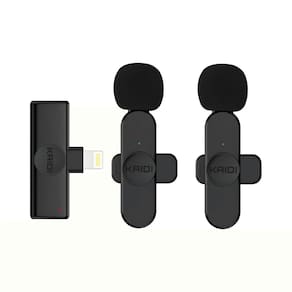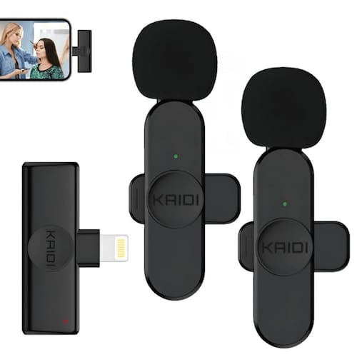 Este sistema Microfone Duplo Kaidi KMF6-A Wireless Lightning para Smartphones possui frequência wireless de alta capacidade, transmissores com clipes removíveis e autonomia de até 4 horas, assim como oferece uma alta qualidade de som, sendo portátil e muito fácil de usar. Projetado para captação simultânea de 2 pessoas, o conjunto traz tecnologia Plug and Play que não necessita de aplicativos e drivers, basta conectar no celular e usar. É perfeito para streaming , reuniões, gravações, criação de e muito mais.Desenvolvido com dois transmissores sem fio e um compacto, o Microfone Duplo Kaidi KMF6-A Lightning oferece uma captação com alta sensibilidade, áudio 360 graus e resposta rápida para que você grave todos os detalhes de som. o microfone Lapela para Smartphone é emparelhado automaticamente imediatamente após a conexão, sem necessidade de softwares adicionais. no , uma porta USB-C disponível permite conectar um carregador não incluso para alimentar o seu celular enquanto está utilizando os microfones sem fio.O microfone Lapela Duplo Sem Fio para Smartphones integra baterias de longa duração e seu alcance sem fio trabalha com uma distância de até 25m sem obstáculos . Áudio limpo e preciso, captação sem fio 360º Plug Lightning para Smartphones e Tablets iOS 2x Transmissores com Microfone Integrado suporta gravação de 2 pessoas simultaneamente Baixa latência, delay inferior a 50 milissegundos Alcance de até 25 metros em locais sem obstáculos Circuito inteligente com redução de ruído Bateria interna de alta autonomia, duração de até 5 horas Compatível com uma variedade de dispositivos LightningAdequado para gravações e transmissões Youtube, Facebook, Live Streaming, Gravação de Vídeo, Vlog, TikTok, Entrevista, Aulas Online e muito mais.Imagens ilustrativas. Homologação Anatel: 101412208726 Ean: 6954268454133