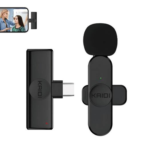 Este Sistema Microfone Sem Fio Kaidi KMF5-C Wireless USB-C para Smartphones possui frequência wireless de alta capacidade, transmissor com clipe removível e autonomia de até 4 horas, assim como oferece uma alta qualidade de som, sendo portátil e muito fácil de usar. Projetado para captação de 1 pessoas, o conjunto de transmissor e traz tecnologia Plug and Play que não necessita de aplicativos e drivers, basta conectar no celular e usar. É perfeito para streaming , reuniões, gravações, criação de e muito mais.Desenvolvido com um transmissor sem fio e um compacto, o Microfone Sem Fio Kaidi KMF5-C USB-C oferece uma captação com alta sensibilidade, áudio 360 graus e resposta rápida para que você grave todos os detalhes de som. o microfone Lapela para Smartphone é emparelhado automaticamente imediatamente após a conexão, sem necessidade de softwares adicionais. no , uma porta USB-C disponível permite conectar um carregador não incluso para alimentar o seu celular enquanto está utilizando os microfones sem fio.O microfone Lapela Sem Fio para Smartphones integra baterias de longa duração e seu alcance sem fio trabalha com uma distância de até 20m sem obstáculos . Áudio limpo e preciso, captação sem fio 360º Plug USB-C para Smartphones e Tablets Transmissor com Microfone Integrado suporta gravação de 1 pessoa simultaneamente Baixa latência, delay inferior a 50 milissegundos Alcance de até 20 metros em locais sem obstáculos Circuito inteligente com redução de ruído Bateria interna de alta autonomia, duração de até 4 horas Compatível com uma variedade de dispositivos USB-CAdequado para gravações e transmissões Youtube, Facebook, Live Streaming, Gravação de Vídeo, Vlog, TikTok, Entrevista, Aulas Online e muito mais.Imagens ilustrativas. Homologação Anatel: 110052213346 Marca: Não Informado Ean: 6954268454102