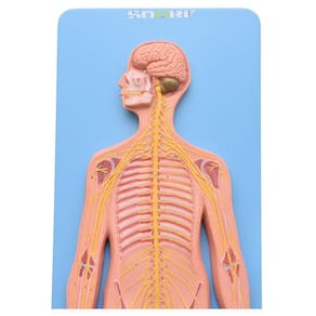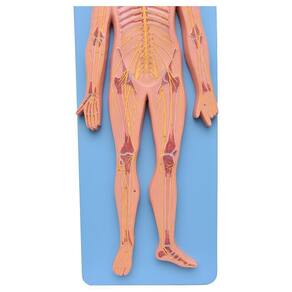 Modelo anatômico que representa de forma esquemática o sistema nervoso central e periférico demonstrando diversas estruturas detalhadas e específicas, confeccionado em PVC; No modelo anatômico SD-5060, 33 estruturas estão identificas e numeradas, tais como: Cérebro; Lobo Parietal; Lobo Frontal; Lobo Occipital; Cerebelo; Medula; Plexo Cervical; N. Supraclavicular; N. Braquial; N. Radial; N. Ulnar; N. Mediano; Ramo Muscular; M. Dorsal; M. Palmar; N. Diafragmático; Ramo Anterior Nervoso Intercostal; Medula espinhal; N. Obturador; N. Femoral; N. Iliohipagátrico; Plexo Lombar; Plexo Sacral; N. Isquiático; N. Fibular Comum; N. Tibial; N. Safeno; N. Fibular Profundo; N. Superficial Fibular; N. Cutâneo Lateral da Panturrilha; N. Palmar Lateral; N. Plantar Medial. acompanha: 01 base plástica; 01 Manual em português, 01 Termo de garantia. embalagem: Caixa de papelão. informação adicional Peso 6.390 kg Dimensões 100 x 37 x 20 cm Ean: 6997800050608