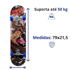 Skate board infantil funs para iniciante esporte suporta até 50kg 11172 Estampa: leão Por que comprar com a imports - enviamos em até 24 horas; - produto de ótima qualidade; - produto testado e muito bem embalado para chegar em perfeito estado; - foco total no cliente. Informações importantes: - marca: funs - modelo: skate semi profissional - indicado para: crianças e jovens - material: madeira e ferro - skate completo montado - dimensões: 79 cm x 21,5 cm - peso: 1,585 kg - suporta até 50 kg Marca: Funs
