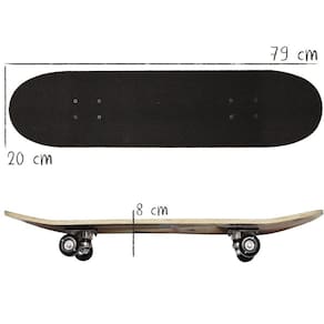 Medidas do skate: 10 x 20 x 79 cm (altura x largura x comprimento)