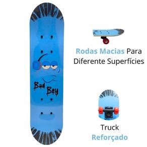 Skate infantil bad boy 40 kg + acessórios de segurança azul Chegou uma super novidade para você que quer agradar o seu filho. O skate infantil é a opção ideal para proporcionar horas de diversão e aventura aos pequenos. Com capacidade para suportar até 40 kg e com estampas vibrantes que estimulam a imaginação, este skate é de sorrisos e momentos inesquecíveis. Além disso, ele é fabricado com materiais de alta qualidade, garantindo durabilidade e segurança durante a prática do esporte. Com rodinhas resistentes e um design ergonômico, proporciona estabilidade e controle, permitindo que as crianças se divirtam com confiança, é também uma ferramenta para incentivar as crianças a desenvolverem habilidades motoras e de equilíbrio de forma divertida e natural. O kit inclui também acessórios de proteção, ele conta, com capacete, cotoveleiras, joelheiras e munhequeiras, peças ajustáveis para garantir a segurança dos pequenos durante o esporte. Adquira agora e proporcione uma vida cheias de experiência, aprendizado e diversão. Por que comprar com a imports - enviamos em até 24 horas; - produto de ótima qualidade; - produto testado e muito bem embalado para chegar em perfeito estado; - foco total no cliente. Informações importantes: - modelo: skate infantil - material: metal, pvc e madeira - medidas: 60 x 15 x 8 cm - medida capacete: 13 x 20 x 26 cm - suporta até 40 kg - indicado para crianças maiores de 4 anos - alta qualidade - rodinhas resistentes Marca: Não Informado Ean: 7892175465417