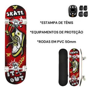 Conteúdo da embalagem: 01 Skate. 01 Capacete. 01 par de joelheiras. 01 par de cotoveleiras.