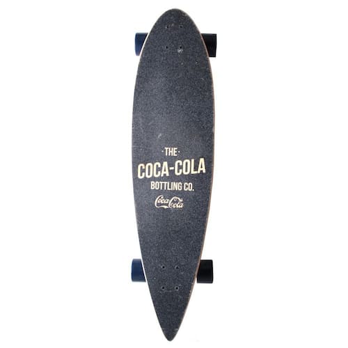 Skate Longboard Coca-Cola - 1886 Shape com 9 lâminas de Maple. Concave diferenciado. Rodas em PU 100A 51 x 31 mm. Rolamento ABEC-5. Marca: Coca-Cola. Dimensão: 79,3cm x 20cm x 10cm. Composição: Alumínio, aço carbono. Quantidade: 01 unidade por embalagem. de 30 dias para defeitos de fábrica.