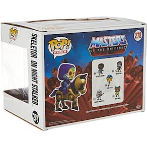 PRODUTO INTERNACIONAL. O vilão mais icônico dos Masters of the Universe agora está disponível como um Pop estilizado: Skeletor com Night Stalker! Este colecionável impressionante tem 18 cm de altura e será o destaque da sua coleção. Os fãs da série vão amar a atenção aos detalhes, com a incrível armadura inspirada em ossos e o notável cavalo espectral Night Stalker