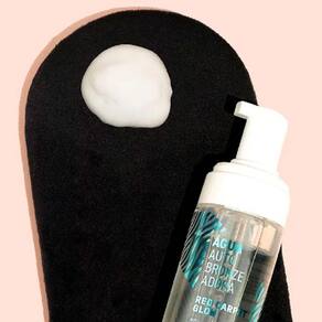 A Água Autobronzeadora Red Carpet Glow, da Skelt, forma uma espuma que se espalha facilmente para um efeito uniforme. Pode ser usada de dia ou à noite, quando você for dormir, já que não mancha a roupa.