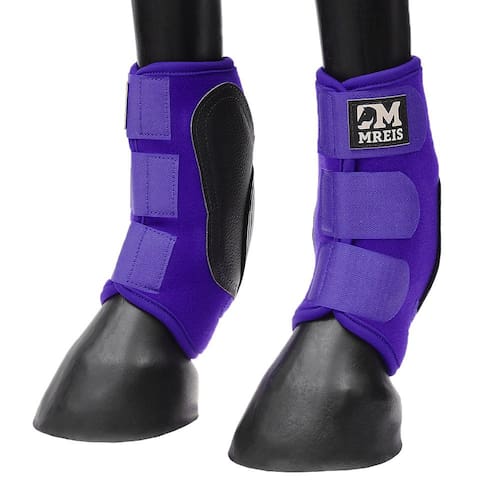 Par de Skid Boots M Reis modelo curto, fabricados em neoprene com revestimento em nylon. Os protetores moldados na parte externa são fabricados em plástico com acabamento emborrachado, protegem os boletos por serem resistentes. Possui um sistema de fechamento em tira autocolante triplo muito moderno dando maior facilidade na hora de colocar ou retirar a proteção de seu animal. Possui reforço em material sintético na parte posterior. Utilizados nas patas traseiras do animal.