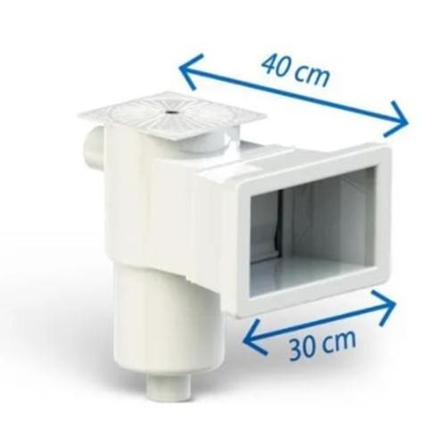 Os skimmers promovem a movimentação e remoção constante da camada superficial da água da piscina, retirando as impurezas em suspensão na lâmina dágua da piscina, onde se encontra o maior índice de contaminação, em função da menor presença do teor de cloro, maior número de microrganismo, além dos resíduos flutuantes como insetos, folhas, cabelos, papéis, óleos bronzeadores, secreções buco - nasais etc Características: Modelo: Boca Larga Cinza Cor: Branca Tubulação 1 1/2'' 50mm Medidas: Boca A 200 Cm X L 286 mm Skimmer Inteiro Profundidade 36 Cm Parte que Fica Exposta na Pedra 23 X 23 Cm Ean: 7894739037993