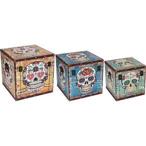 Skull Caixa Organizadora 33x34,5x34,5cm Mdf Color 3pç Bau DIMENSÕES Caixa Pequena Altura: 25 cm Largura: 25 cm Profundidade: 25 cm Caixa Média Altura: 29 cm Largura: 29 cm Profundidade: 29 cm