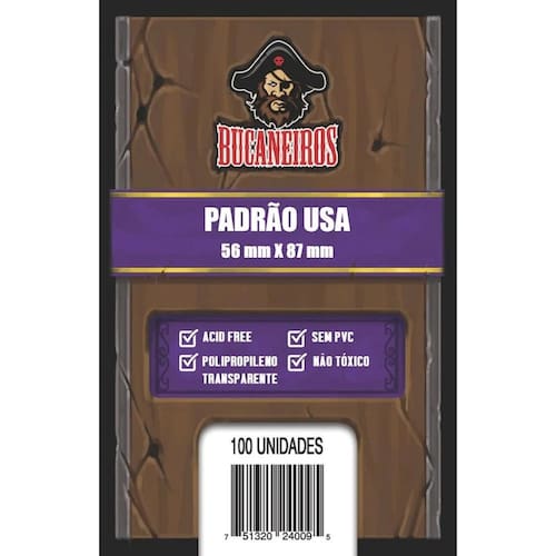 Apresentamos os sleeves Bucaneiros de cartas de alta qualidade, projetados para proteger suas cartas favoritas de board game, card game e colecionáveis. Com um ajuste perfeito e material resistente, os sleeves garantem que suas cartas fiquem livres de arranhões, sujeira e desgaste.