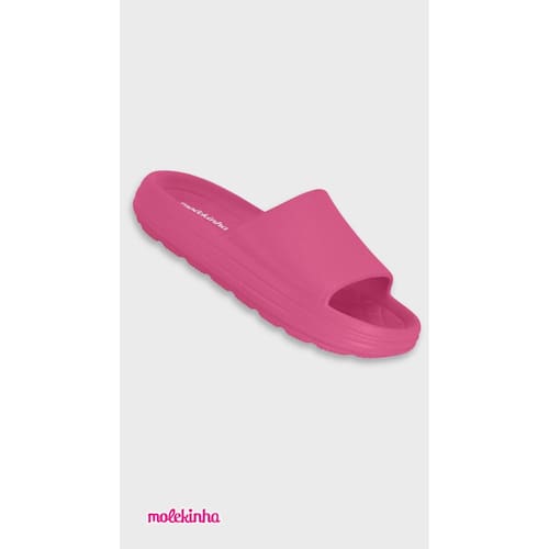 A marca Molekinha NÃO UTILIZA matéria prima animal.ESTILO: Sua filha vai ficar com os pés confortáveis e super charmosa nesse chinelo leve e macio - pesa menos de 170grs (ref, par 29/30). Conta com palmilha macia que proporciona conforto extra e solado com frisos antiderrapante.MEDIDAS APROXIMADAS:Lembre-se: meça o pé numa folha. coloque 0,5cm de folga 27/28 - 18,5cm - 19,3cm29/30 - 19,4cm - 20,4cm31/32 - 20,5cm - 21,4cm33/34 - 21,5cm - 22,3cm35/36 - 22,4cm - 23,5cm