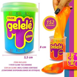 = = = = = = = = = = = = = = = = = = = = = = = descrição = = = = = = = = = = = = = = = = = = = = = = = Slime é um brinquedo fantástico em forma de massa gelatinosa. O produto tem o formato de uma massa colorida que possui uma textura maleável, e que pode ser modelada em vários formatos como se fosse uma geleia nas mãos. A doce brinquedos aprimora experiências sensoriais e a percepção com as mãos. Ajuda na desenvoltura de alguns aspectos cognitivos como: - coordenação motora - criatividade - contato com as cores e textura.