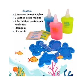 Kit Slime Leléba Gel Mágico Fundo Do Mar Azul Com 11 Peças Gelelé - Doce Brinquedos Mergulhe em um mundo encantado de aventura cheia de magia. Este brinquedo fascinante oferece uma experiência sensorial única, com um gel mágico inspirado nas maravilhas do oceano. Dentro do pote, você encontrará um gel com texturas e cores que lembram as profundezas do mar, proporcionando uma sensação tátil divertida e relaxante. O gel vem com tonalidade vibrantes e é repleto de pequenos detalhes que imitam criaturas marinhas, como peixinhos, estrelas do mar e conchinhas, oferecendo uma imersão completa no ambiente . Ideal para crianças e adultos que buscam um passatempo criativo ou uma maneira de aliviar o , o Brinquedo Gelele Leleba é fácil de manipular e limpar, garantindo que a diversão seja duradoura e sem bagunça. Deixe sua imaginação flutuar e explore o fundo do mar com este gel mágico encantador. Recomendado para maiores de 3 anos Contém: 03 frascos de gel mágico coloridos, 02 sachês de pó mágico, 04 forminhas de animais marinhos, 1 bandeja e 1 espátula. ATENÇÃO: Não deve ser ingerido. Lave as mãos antes e após o uso. Brinque em superfícies limpas e impermeáveis. Composição: água, fragrância, pigmentos, espessastes, conservantes, aditivos e polímero PP. Homologação Inmetro: CE-BRI/IQB 006107 54705/21-001