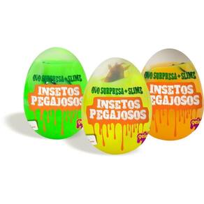 Ovo Insetos Pegajosos é uma combinação de itens que fazem a diversão da criançada bichos em borracha envolvidos em slime, proporcionando sensação tátil e visual arrepiantes Embalagem: dp.