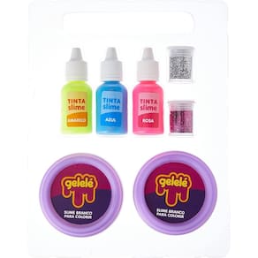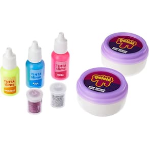 KIT TINTA PARA SLIME; Tintas especialmente desenvolvidas para slime. Tem fórmula revolucionária e segura, sai com água e não mancha às mãos. Diversão garantida para mudar a cor de slimes já prontos e para colorir os slimes que “fabricar”. Traz ainda glitters para decorar!