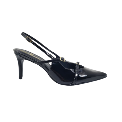 Slingback Feminino Salto Médio Fino.Moda Fashion. Esse é um modelo muito desejado, super moderno.Slingback Nara possui salto 8cm de altura, bico fino, possui fechamentos ajustados por fivelas.Disponível nas cores preto e marsala.Numeração Disponível do 41 ao 43