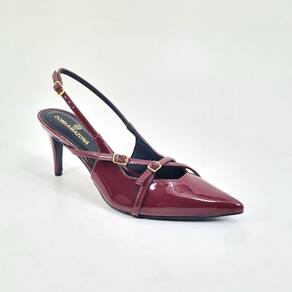 Slingback Feminino Salto Médio Fino.Moda Fashion. Esse é um modelo muito desejado, super moderno.Slingback Nara possui salto 8cm de altura, bico fino, possui fechamentos ajustados por fivelas.Disponível nas cores preto e marsala.Numeração Disponível do 41 ao 43