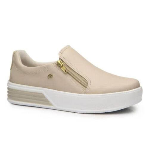 Esse tênis Slip on é fabricado em couro, matéria prima de alta qualidade, resistência e durabilidade. O forro em tecido espumado garante o conforto e a absorção de suor, características necessárias para manter o pé seco e arejado. O solado é leve e flexível, além de ser flatform, uma tendência para quem gosta de estilo, praticidade e muito conforto na composição de seus looks. Já a palmilha é feita em EVA macio, que agrega ainda mais na questão do conforto. Além de tudo isso, o modelo conta com o sistema