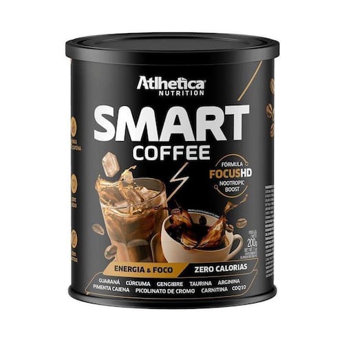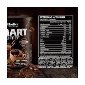 Smart coffee 200g Smart coffe 220g o smart coffee foi desenvolvido com a exclusiva formula focus hd, um blend de taurina, cafeína, guaraná, arginina, carnitina e coenzima q10. Esses ingredientes atuam em perfeita sinergia para aumentar a energia e foco do o seu dia a dia. diferente de tudo o que você já viu no mercado, o smart coffee é uma evolução seu consumo diário de café, pois sua composição contém 5x mais cafeína do que uma xicara de café tradicional e além disso ele é livre de calorias, gorduras, sódio e lactose. o smart coffee é a opção ideal para você consumir diariamente, assim você terá mais disposição para realizar suas tarefas, seja no trabalho, treino ou estudos. benefícios: - não quebra o jejum intermitente;- melhor disposição;- zero calorias;- 5x mais cafeína do que o café tradicional;- mais energia;- formula exclusiva focus hd;- sem adição de sódio;- não contém lactose.