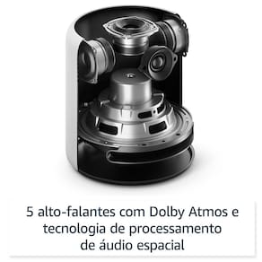 Aproveite uma experiência de áudio imersiva: O Echo Studio agora conta com tecnologia de processamento de áudio espacial, que proporciona uma experiência mais imersiva e completa. Tratando-se de formatos de som estéreo, ela cria um som mais complexo e envolvente. Seu sistema de áudio conta com três alto-falantes, um tweeter e um woofer oferecendo graves potentes, menos distorção, com frequências médias dinâmicas e agudos nítidos. A tecnologia Dolby Atmos proporciona percepção de espaço, clareza e profundidade.