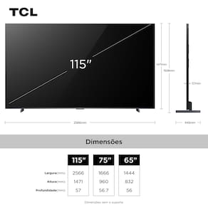 Smart TV TCL 115” C7K QD Mini LED 4K, prepare-se para uma experiência visual impressionante! TelaTela plana com tecnologia