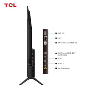- Funções Adicionais: Acessibilidade para deficiente visual, closed caption/legenda, perfil infantil, relógio, sleep timer e TCL Channel