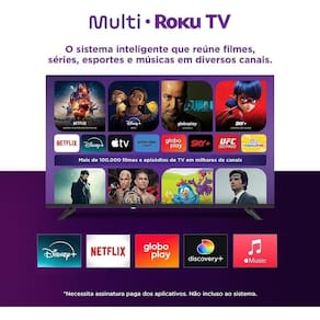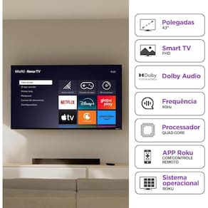 Experimente um entretenimento inteligente com a praticidade do Roku TV e a qualidade da TV Multi 43" Full HD.