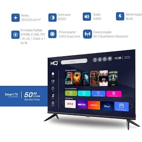 Transforme sua sala com a HQ UDE50HR315LN: resolução 4K Ultra HD para imagens nítidas, cores realistas e ampla tela de 50 polegadas com proporção 16:9. Ideal para curtir filmes, séries e jogos com ótima definição e imersão.Interface Android fluida e conectividade total.