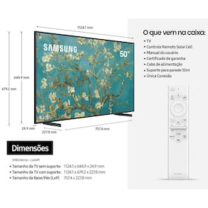 Além disso, a The Frame "sente a sua presença", ligando automaticamente para exibir a sua tela favorita, quando percebe que você entrou no ambiente. Ao se retirar, ela desliga sozinha, poupando energia. Ela também já vem de fábrica com o exclusivo Suporte Slim, que permite uma instalação super rápida e fácil, praticamente sem espaço entre a TV e a parede, reforçando a sua posição de item decorativo na casa. E com o modo de conexão única, apenas um fio fino e transparente conecta a The Frame à uma central de conexões externa - o One Connect - ligando a TV à energia e aos demais aparelhos.