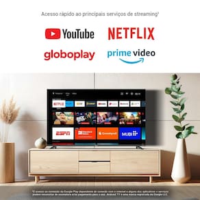 Sinta a imersão proporcionada pela borda infinita, que oferece um design moderno e sem distrações. Com o Chromecast built-in, você pode assistir, jogar e explorar seu celular diretamente na sua Smart TV P50EAA. O Google Assistente facilita suas pesquisas e comandos através do controle remoto, trazendo conveniência para sua rotina.