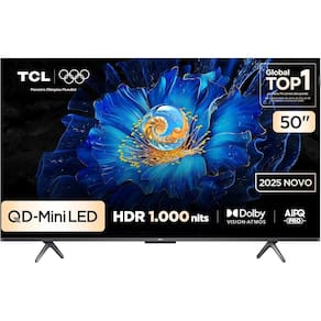 Tecnologia QD-Mini LED, Alto Brilho HDR, Tela HVA com contraste 5000:1, Som estéreo envolvente, DTS Virtual:X, Dolby Atmos, Game Master, Resolução 4K UHD (3840 x 2160), Frequência Real 60Hz, HDR 10+ HLG, Micro Dimming, Dolby Vision, Tempo de Resposta do Painel 6.5ms, Sistema Operacional Google TV, Memória 16GB, Compatível com Alexa, HDMI 2.1, Wi-Fi dual band, Bluetooth 5.4, Google Cast, GINGA, TV DIGITAL, Acessibilidade para deficiente visual, Closed caption/legenda, perfil infantil, Relógio e Sleep Timer, TCL Channel.Vendido e entregue por MIRANDA