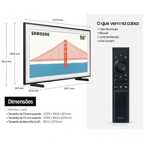 A Smart TV QLED 55 Samsung The Frame 55LS30A UHD Suporte de Parede Slim Incluso, Molduras Customizáveis, Modo Arte é perfeito para você!