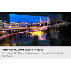 - Tamanho da tela: 65 Polegadas - Resolução: 4K (3.840 x 2.160) - Taxa de atualização: 120Hz - Processador: NQ4 AI Gen2 - HDR10+ - Tecnologia OLED: milhões de pixels autoiluminados - Áudio: 20W RMS, 2 canais, Dolby Atmos - Sistema Operacional: Tizen™ Smart TV (7 anos de atualização) - Assistentes de voz: Alexa, Bixby - Recursos: Vision AI, Upscaling 4K AI, Motion Xcelerator - Conectividade: Wi-Fi 5, Bluetooth 5.3 - Entradas: 4 HDMI, 2 USB, 1 Ethernet (LAN), 1 saída óptica, 1 entrada RF - Controle remoto: SolarCell - Medidas com base: 1443,5 x 897,3 x 263,3 mm - Medidas sem base: 1443,5 x 829,2 x 33,9 mm - Medidas da base: 953,1 x 263,3 mm - Peso com base: 16,5 kg - Peso sem base: 16.1 kg - Suporte VESA: 300 x 200 mmVendido e entregue por Extra
