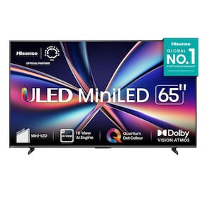 - Modelo: Hisense 65U6QV 65Q72QUV ULED - Tela: 65 polegadas plana - Resolução: 4K UHD (3840x2160) - Tipo de painel: MiniLED - HDR10 - Dolby Atmos - Taxa de atualização: 60Hz - Tempo de resposta: 8ms - Sistema operacional: Vidaa U9 - Compatibilidade: Alexa e Google Home - Áudio: Estéreo 2x10W - Ângulo de visão: 178° - Contraste dinâmico: 5000:1 (typ) - Brilho: 600 nits - Conectividade: Wi-Fi integrado, Ethernet (LAN) - Entradas: 4 HDMI 2.0, 2 USB 2.0, 1 RF (antena), 1 entrada de áudio e vídeo, 1 saída de áudio digital e 1 conexão para fone de ouvido. - Consumo de energia: 220W - Alimentação: AC100-240V, 50/60Hz - Tipo de tomada: 10A 3 pinos - Dimensões sem base: 1446 x 870 x 298mm - Dimensões com base: 1892 x 1134 x 430mm - Dimensões da base/pé: 1132×298mm - Peso sem base: 20,4 kg - Peso com base: 20,6kg - Padrão VESA: 400x400mm - Cor: PretoVendido e entregue por Extra