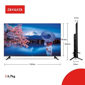 Itens inclusos 1 Smart TV AIWA 43" 1 Controle remoto com microfone integrado 2 Pés de suporte 1 Cabo de energia