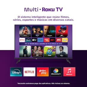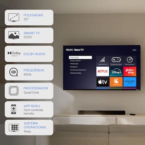 Smart TV DLED 32 HD Multi Essencial Roku 3HDMI 2USB Wi-Fi - TL081E, Roku - Sistema completo para o seu entretenimento, A Multi Essencial Roku TV é inteligente o suficiente para reunir seus apps de streaming favoritos, diversas entradas e qualidade de imagem em um só lugar.Vendido e entregue por OBABOX