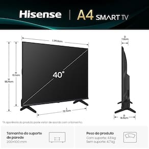 Smart TV Hisense DLED FULL HD 40" 40A4NV com Processador AI HDR10 DTS Virtual X DLNA Alexa e Google