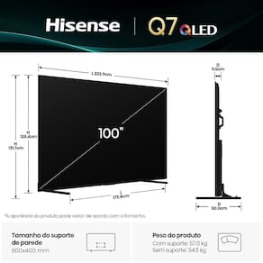 Smart TV Hisense QLED 4K 100" 100Q7QG com Processador AI Dolby Vision HDR10+ Adaptative HLG Filmmaker Mode Dolby Gaming Dolby Atmos e Alexa