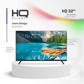 Smart TV LED 32 HQ HD HQSTV32 com Conversor Digital Externo, HDR, Tela Frameless, Android 11, Design Slim, Wi-Fi integrado, 3 HDMI, 2 USB, Taxa de atualização de 60Hz, Tempo de resposta de 6,5ms.Tamanho da tela