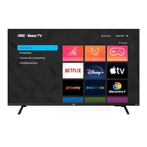 Aplicativos Disponíveis: Netflix, YouTube, Prime Vídeo, Disney+, Star+, HBO Max, Spotify e outros milhares disponíveis na Roku Store