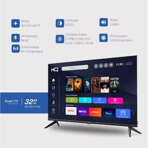 Smart TV LED 32 polegadas com resolução HD, sistema HDR, tela frameless, Android 11, design slim, conectividade Wi-Fi, 3 saídas HDMI, conversor digital, taxa de atualização de 60Hz e tempo de resposta de 6,5ms.Infelizmente não temos estoque do produto que você está procurando no momento.