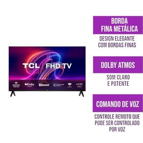 Smart tv 32 fhd tcl led android s5400a bivolt Experimente imagens vibrantes e desempenho ágil com a smart tv tcl de 32 fhd. Com tecnologia led e a plataforma android tv, você tem acesso a uma infinidade de aplicativos e conteúdos, além de um sistema de operação rápido e intuitivo. O design elegante com borda metálica e a qualidade de imagem full hd garantem uma experiência de visualização imersiva para suas séries, filmes e jogos favoritos. Além disso, com a versatilidade bivolt, ela se adapta facilmente a qualquer ambiente. Características - painel led - resolução full hd 1920 x 1080 - borda fina metálica para um design sofisticado - inteligência artificial + android tv com aplicativos essenciais pré-instalados - qualidade de som dolby atmos para áudio claro e potente - controle remoto com comando de voz para mais praticidade Especificações técnicas - marca: tcl - modelo: 32s5400af - cor: preto - tela: 32 polegadas plana - frequência: 60hz - voltagem: bivolt - potência: 50w - dimensões com pedestal : 71,6 x 46,8 x 18,2 cm - dimensões sem pedestal : 71,6 x 42,1 x 8,0 cm - peso do produto: 3.44 kg - peso com embalagem: 4.9 kg - compatível com suporte de parede padrão vesa: 100x100mm - conexões: wi-fi dual band, bluetooth 5.0, 1 porta lan, 1 entrada av, 1 entrada rf, 1 saída de áudio digital óptica , 1 entrada usb, 2 entradas hdmi Chromecast integrado - tecnologia hdr para contraste e brilho aprimorados - micro dimming: controle de iluminação em regiões da tela - : 12 meses Conteúdo da embalagem: - smart tv led 32 fhd tcl s5400af - controle remoto - 2 pilhas aaa - cabo adaptador p2/rca - 2 bases pedestal - parafusos para fixação das bases Equipe bonuti : informações sobre nossos produtos e trabalho - embalagem segura para evitar danos durante o transporte - produto testado de fábrica, com suporte em caso de defeitos - para verificar a previsão de entrega, adicione o produto ao carrinho e digite seu cep. Homologação Anatel: 112572013224 Marca: Não Informado