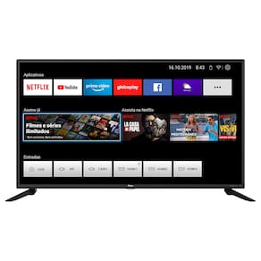 - Dolby Audio: Sistema de som Dolby Digital que transmite o som do filme ou vídeo reproduzido em 5.1 canais. - HDMI: Conecte seu dispositivo favorito e reproduza com alta qualidade suas imagens. - Conexão Wireless: Sistema de conexão sem fio, prático para conexão entre seu televisor e a sua internet. - Processador Gráfico Triple Core: Processador gráfico com três núcleos que trabalha em conjunto com o processador do televisor, isso permite um melhor desempenho de imagens e respostas gráficas. - Processador Quad core: É um processador com quatro núcleos de processamento, permitindo um melhor desempenho do seu televisor. - Midia Cast: Aplicativo de espelhamento entre dispositivo móvel e seu televisor. Obs.: é necessário a compatibilidade do dispositivo móvel com a tecnologia. Para verificar a compatibilidade é necessário acessar ao site: www.wi-fi.org. - Youtube: Maior site de compartilhamento de vídeos. - Globoplay: Aplicativo stream que permite acesso a inúmeros filmes e séries. - Controle Remoto com botão Netflix, Globoplay, Youtube e Prime Video: Acesso rápido a seus apps preferidos - Distância entre os pés da base: 80 cmVendido e entregue por Extra