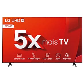 • Marca: LG • Modelo: 50UT801C0SA •Tamanho da tela: 50" • Resolução: 4K • Resolução (Pixels): 4K Ultra HD (3.840 x 2.160) • Formato da tela: 16:09 • Tipo de painel: LCD/LED • Processador: A5 Ger7 AI Processador 4K • Sistema Operacional: webOS 24 • ThinQ AI: Sim • Google Assistente Built-In: Sim • Alexa Built-In: Sim Compatibilidade Amazon Alexa • AI Picture: AI Picture Pro • AI Brightness: Sim • Frequência Nativa (Hz): 60Hz • Upscaler: 4K Upscaler • Áudio: AI Sound Pro (Virtual 9.1.2 Up-mix) • Potência (RMS): 20W • Conexões: 3 HDMI 1 Entrada RF 1 Entrada LAN (RJ 45) 2 Entrada USB 2.0 1 Saída Digital Óptica Bluetooth In/Out Sim (V5.0) WIFI (Wi-Fi 5) • Controle Remoto: Smart Magic • Cabo de força: Sim • Parafusos: Sim • Manual em Português: Sim • Voltagem: AC 100 - 240V • Consumo médio: 150W • Padrão Vesa: 200 x 200 mm