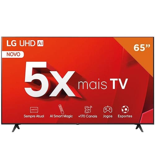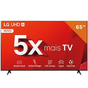 Smart TV LG 65 Polegadas, 4K UHD, LED, UT8050PSA, AI 5 4K Gen7, HDR10 / HLG, AI Brightness, Filmmaker Mode, 4K Upscaling, Wi-Fi 5, Bluetooth (v. 5.1), Bivolt (110 e 220 Volts), 12 meses de garantia.Infelizmente não temos estoque do produto que você está procurando no momento.