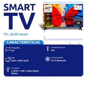 Imagine se sua sala virasse uma janela para outros mundos? Com a TCL QLED Smart Full HD de 40, voce nao esta apenas ligando a TV, esta iniciando uma nova era na forma de ver, ouvir e interagir com o entretenimento. Uma fusao de tecnologia, estilo e inteligencia que transforma o comum em algo extraordinario.