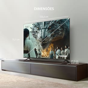 Tecnologia QLED, resolução 4K, brilho preciso e uniforme, cores vibrantes, detalhes nítidos. Google TV com acesso a mais de 400.000 filmes e séries. Dois alto-falantes de 8W RMS (16W RMS total). Controle parental. Integração com smartphone via espelhamento de tela. Controle remoto com comando de voz e botões de atalho.Infelizmente não temos estoque do produto que você está procurando no momento.