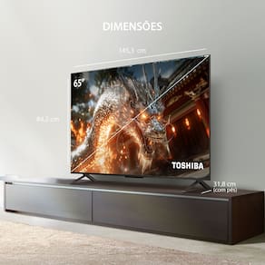 Smart TV QLED 65 4K Toshiba Google TV 4HDMI 2USB Wi-Fi, Google TV, Dolby Áudio com Dolby Vision Atmos, dois alto-falantes clear direct, controle parental, Espelhamento de Tela, AirPlay, Comando de Voz, Far Field Voice, Bluetooth 5.3, Wi-Fi, Bivolt, Navegador, Controle a TV com comandos de voz por meio do Google Home.Vendido e entregue por Multi Oficial