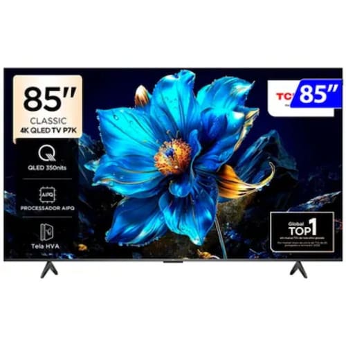 Telona de cinema com painel QLED e resolucao 4K UHD, ideal para curtir filmes, series, esportes, streaming e muito mais. A Smart TV TCL 85P7K se destaca pelo tamanho impressionante de 85, oferecendo uma experiencia imersiva para diferentes tipos de conteudo. Conta com modos de imagem dedicados e HDR10+, que aprimora contraste, brilho e detalhes de cena.
